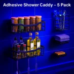 A versatile 5-piece shower organizer set made of rust-resistant stainless steel, featuring strong adhesive mounts—no drilling required.