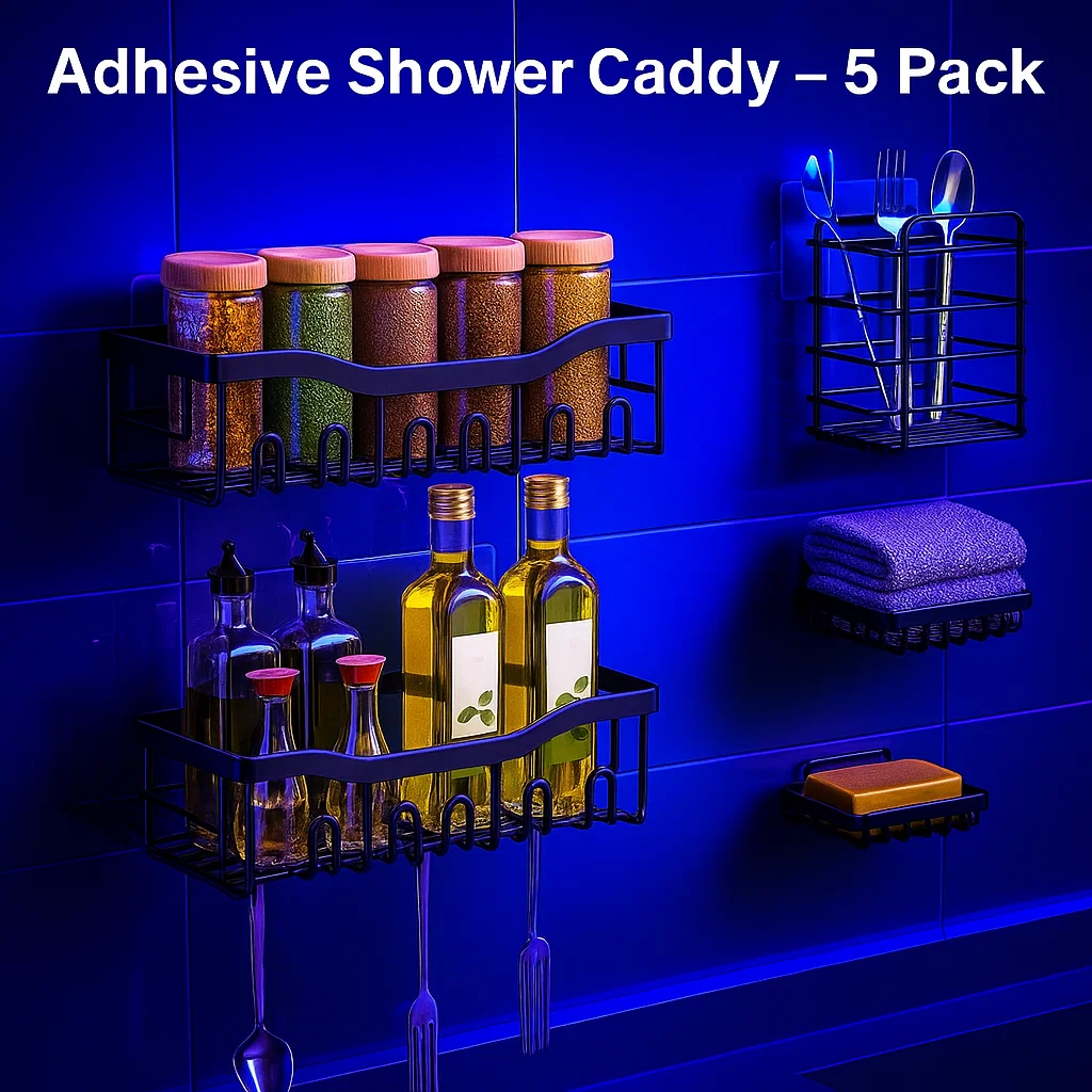 Upgrade bathroom organization with this Adhesive Shower Caddy 5‑Pack. Crafted from premium SUS 304 stainless steel with a durable high‑temperature finish, the set includes: