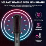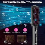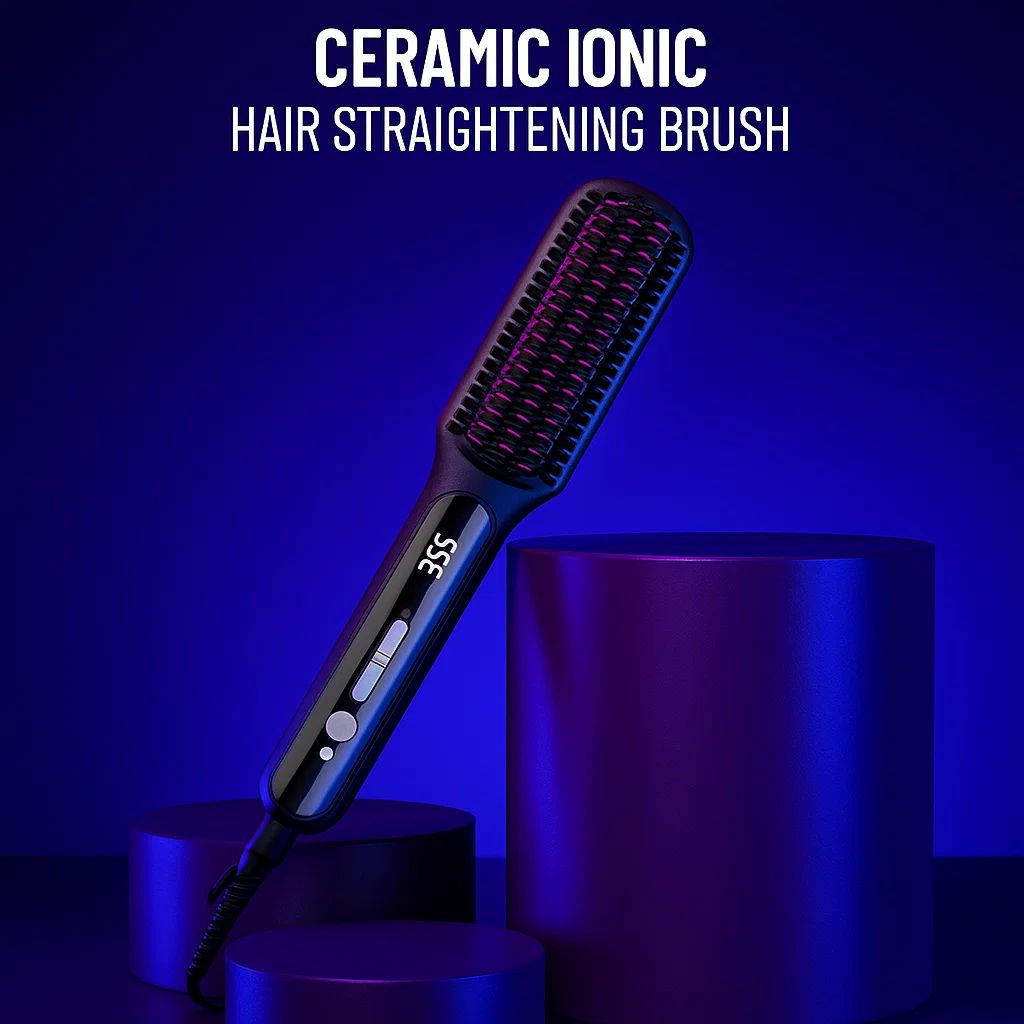 2-in-1 hair straightening brush with ceramic plates and ionic technology—tames frizz and smooths hair quickly and safely.