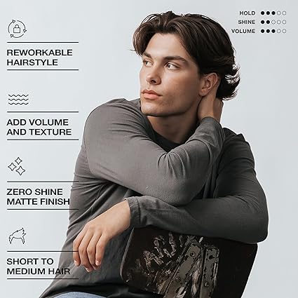 Medium-hold matte hair clay that adds volume, texture, and a natural reworkable look with zero shine.
