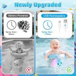 Interactive waterproof whale bath toy that sprays water, lights up, and plays music.
