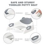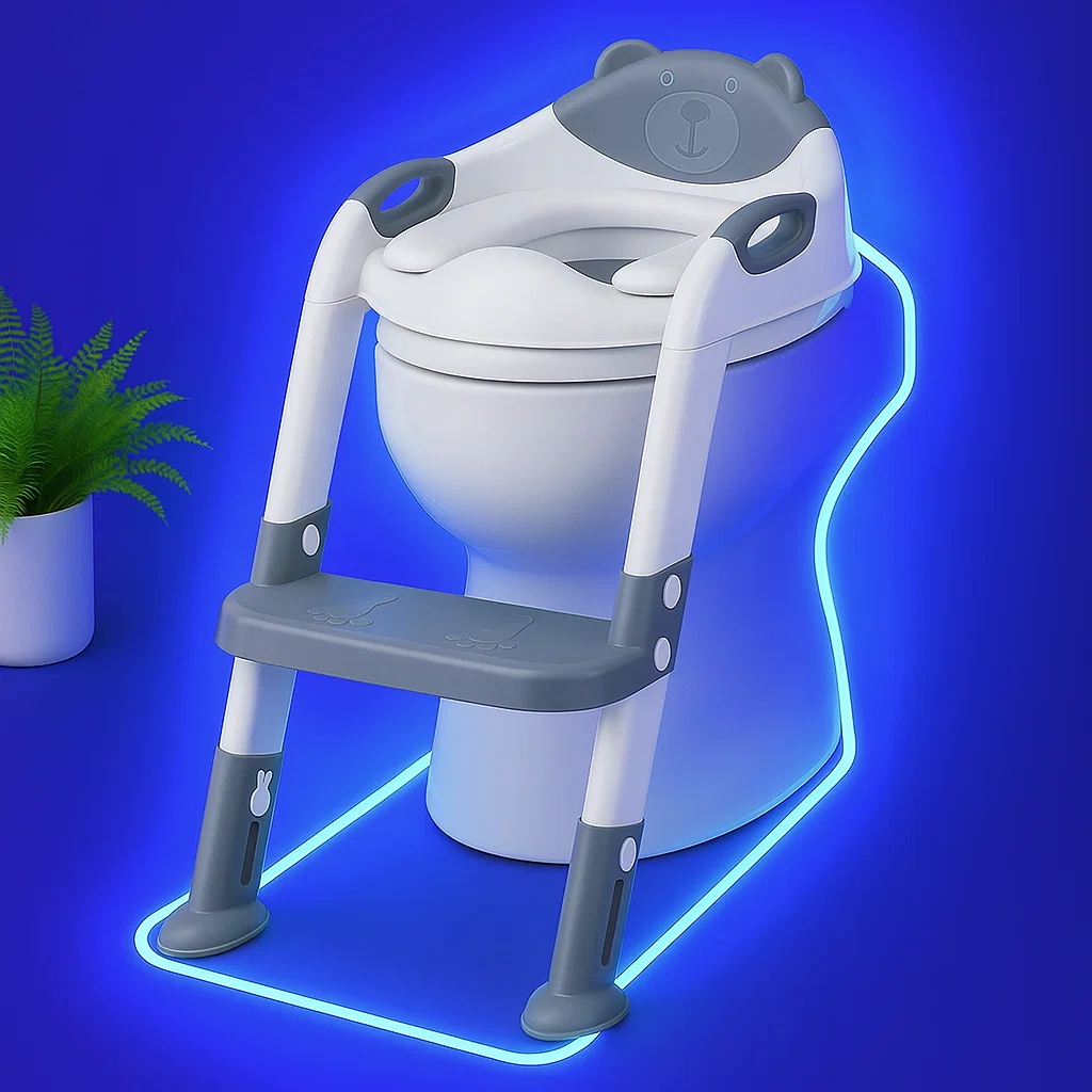 Compact, foldable step stool to assist toddlers during potty training and bathroom routines.