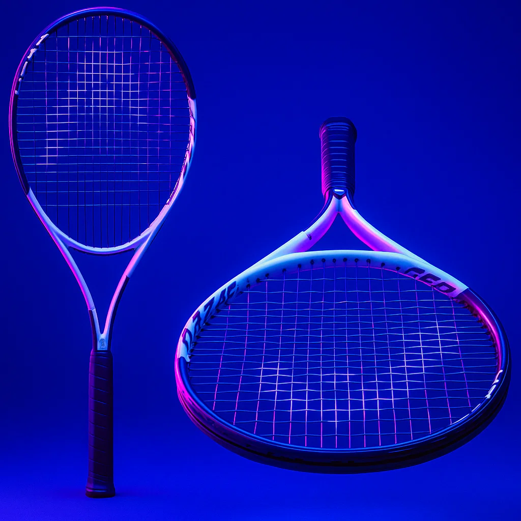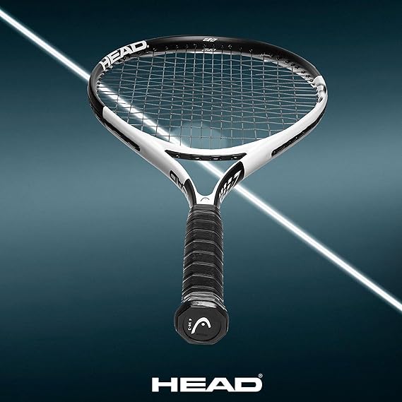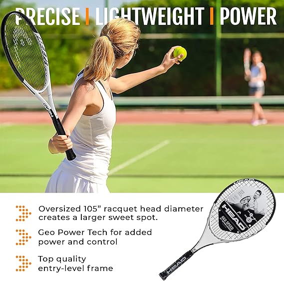 Lightweight 27″ graphite racket with oversize head and head-heavy design for precise control and power.